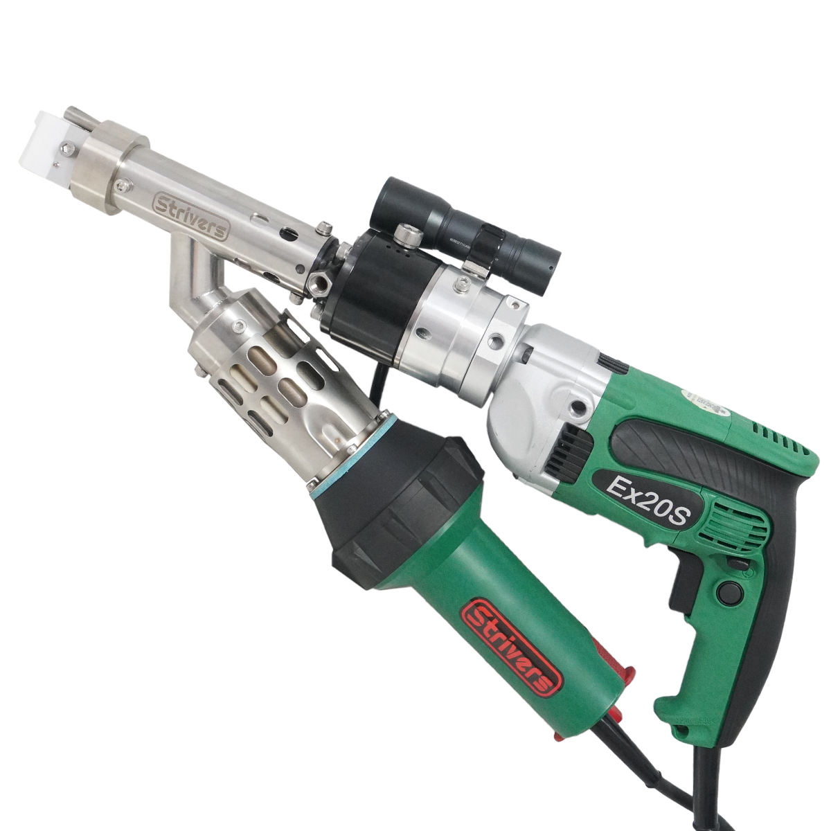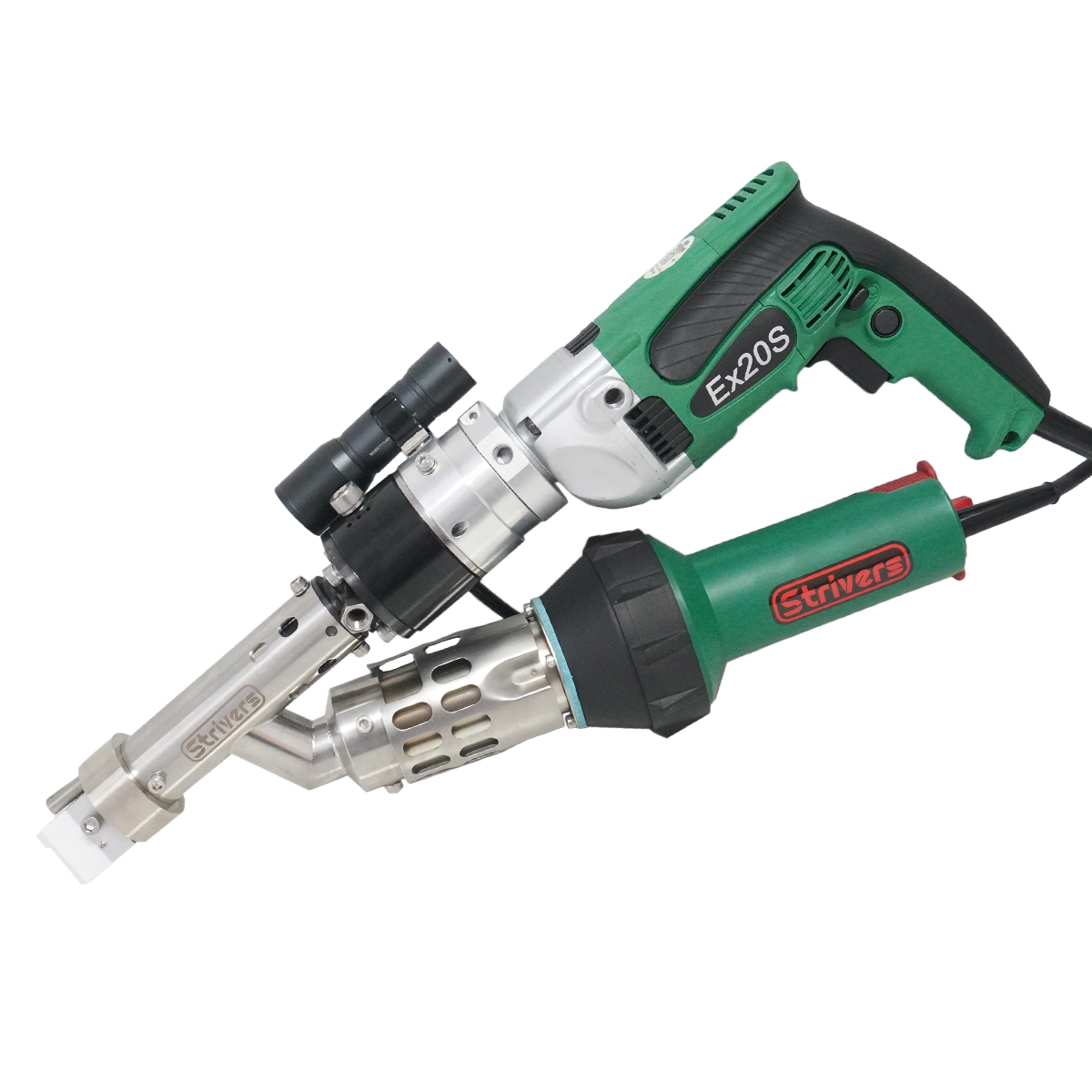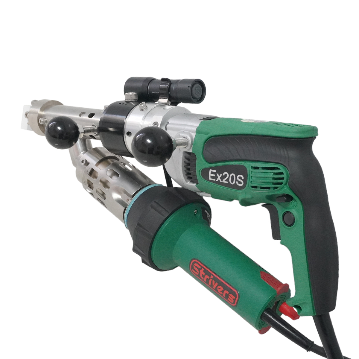 The EX20S is extremely compact, yet still powerful with 2kgs output. It's extremely durable, ergonomic and comes with countless ways to hold it. Due to the arrow-shaped body that narrows to a point, users may weld corners and difficult-to-reach places more easily than with traditional extruders. The guide for the pre-heated air is integrated into the end of the extruder, enabling the welding shows to be mounted in any position, rotating 360 °.