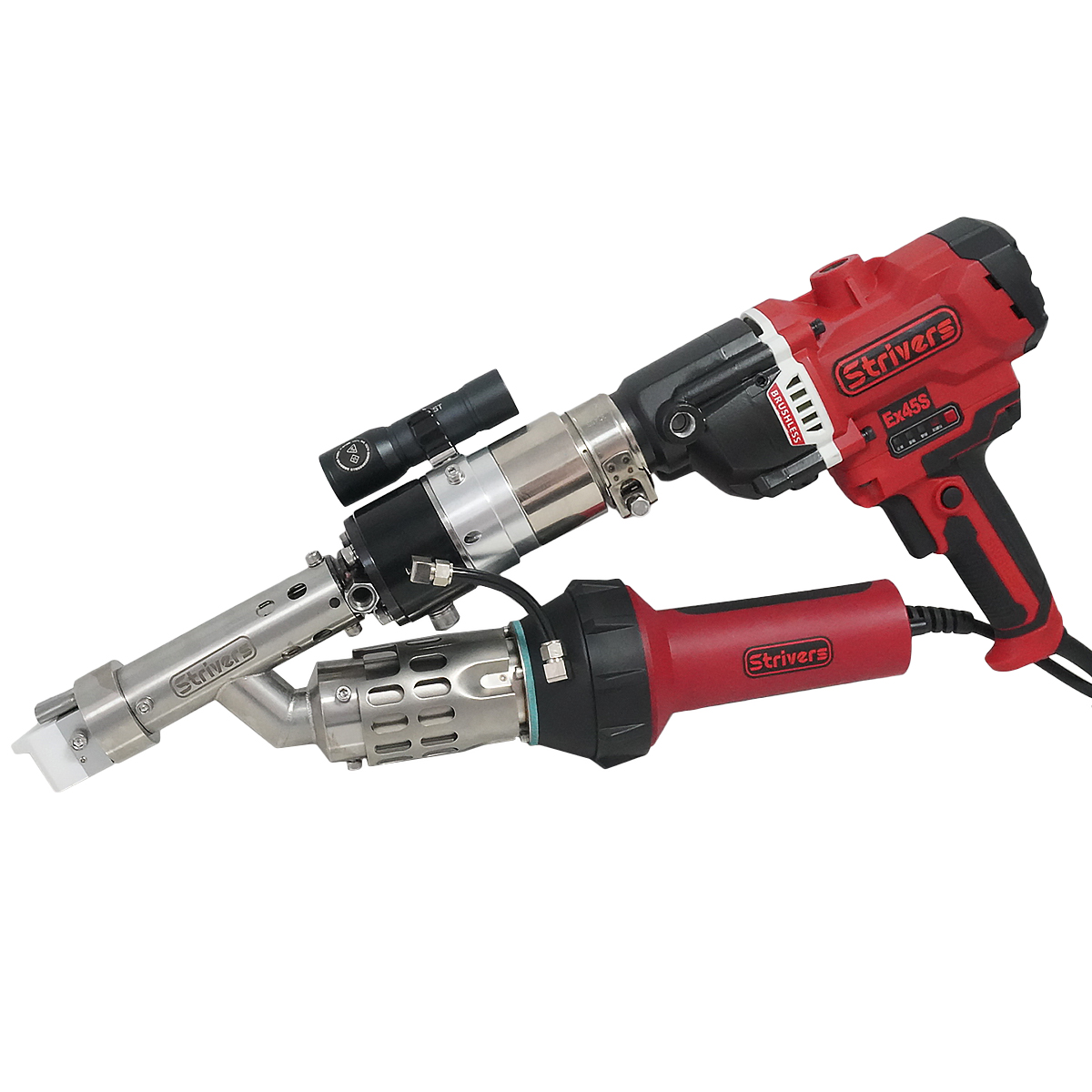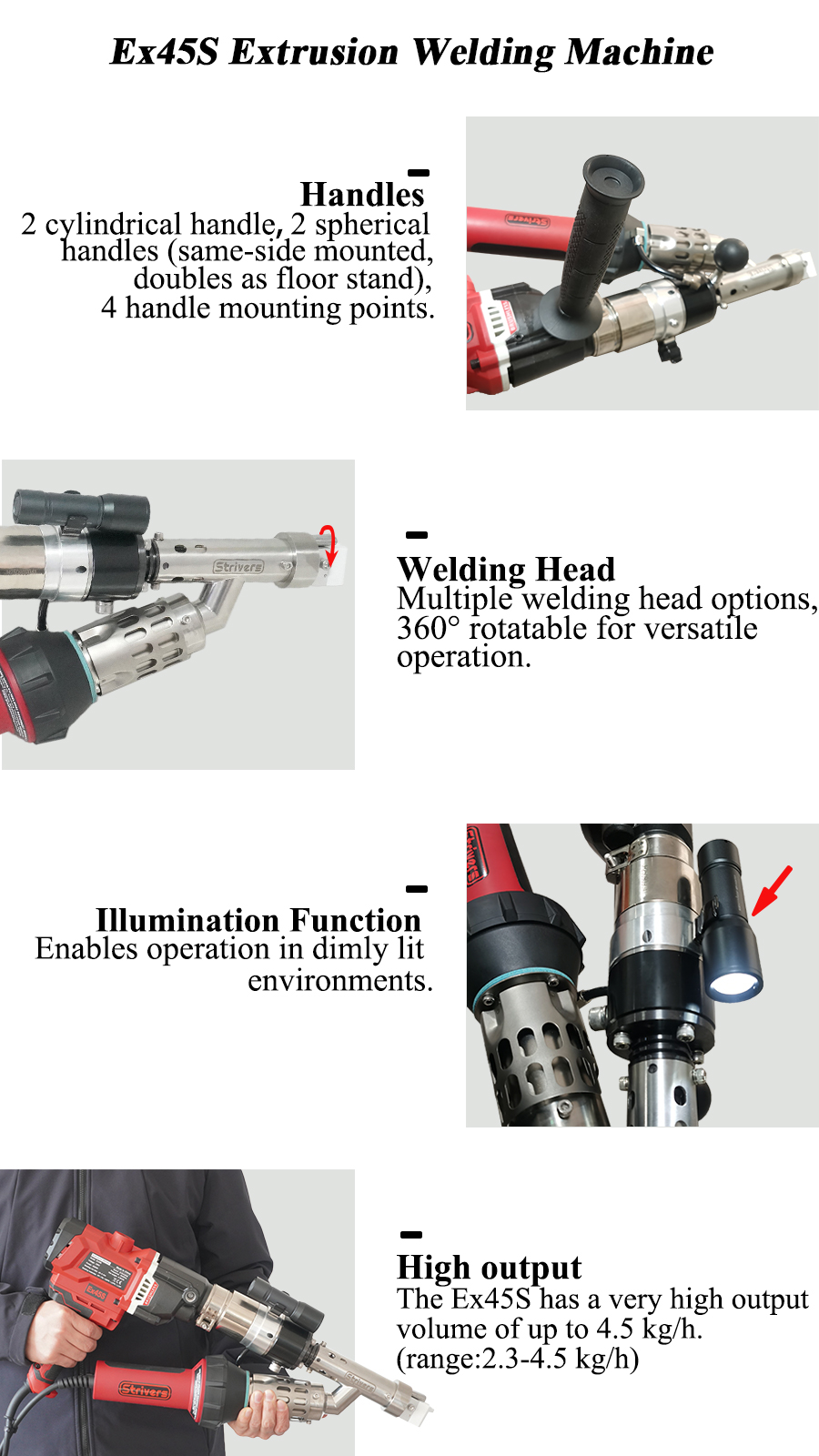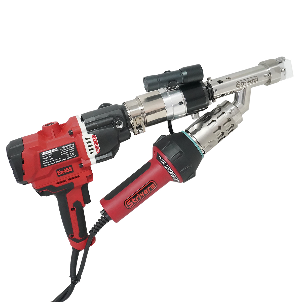 The EX45S is the most powerful hand extruder from our company. The ergonomically shaped extrusion welder convinces with 4.5 kg/h output for plastic welding in tanks and containers. our hand extruder is more flexibility when welding large objects made of polyethylene (HDPE) and polypropylene (PP). it can do tanks, electroplating tanks, water reservoirs, fish breeding tanks, flue gas scrubbing systems, pipelines, etc., for example.